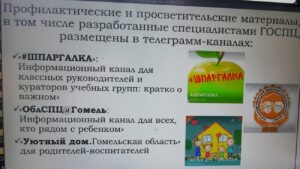 «Система работы учреждений дошкольного образования по профилактике, раннему выявлению семейного неблагополучия и социального сиротства» — тема консультации для руководителей и специалистов учреждений дошкольного образования, которую провела Борисова Д.В., заведующий отдела координации деятельности СПЦ и деятельности учреждений образования.
